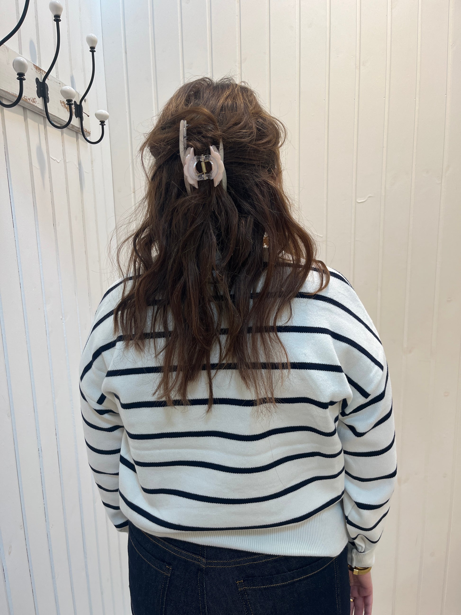 Sød sweater med pink tekst. Størrelserne er tilsvarende.