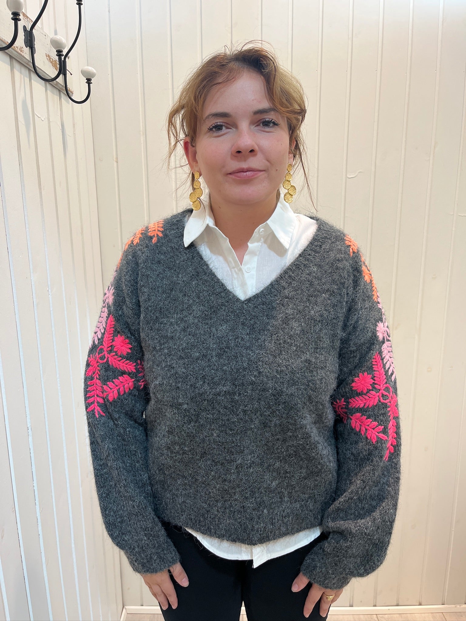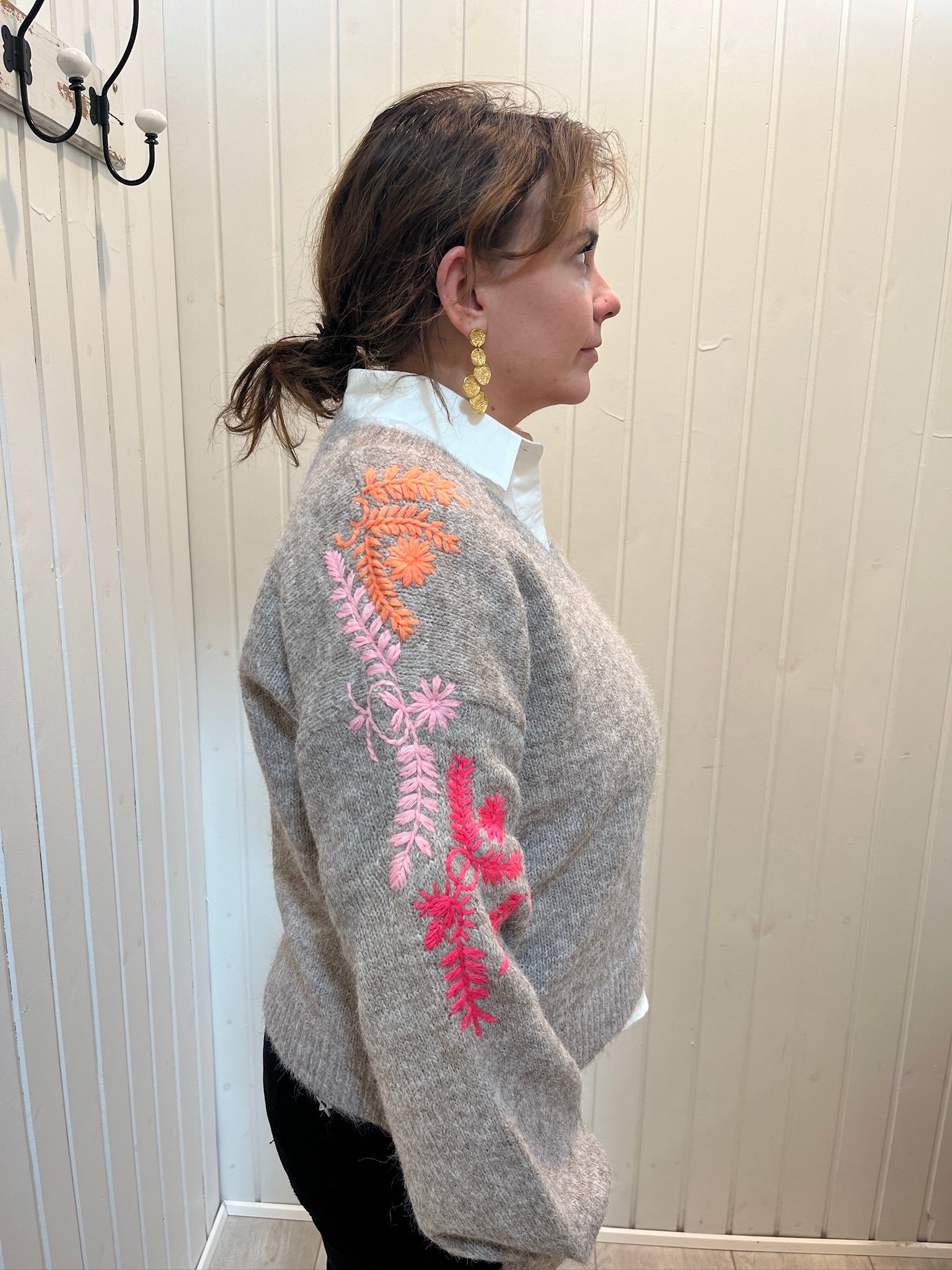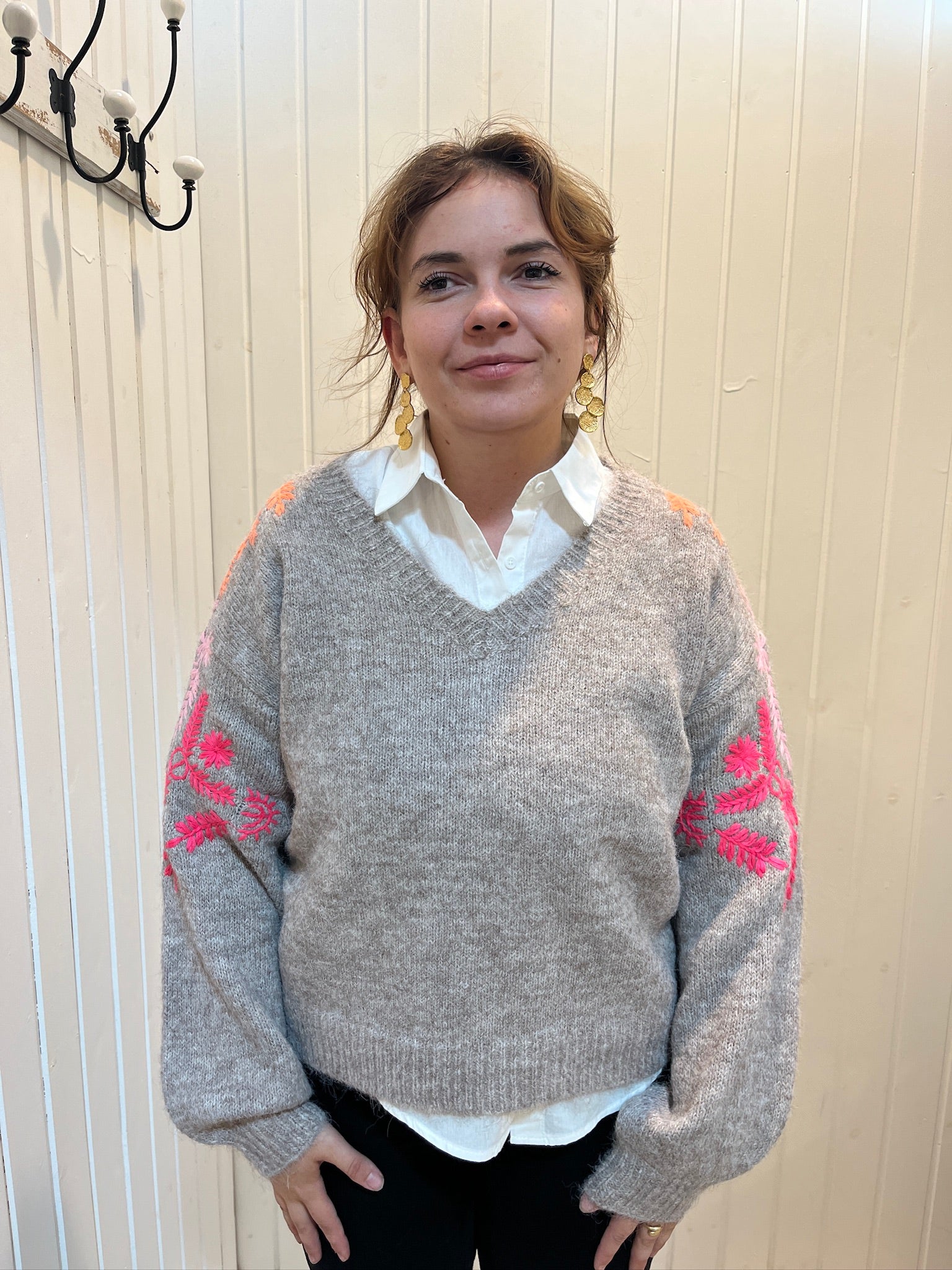 Dejlig strik - fås i grå og i beige. Perfekt til at have udover en skjorte. Strikken er one size.